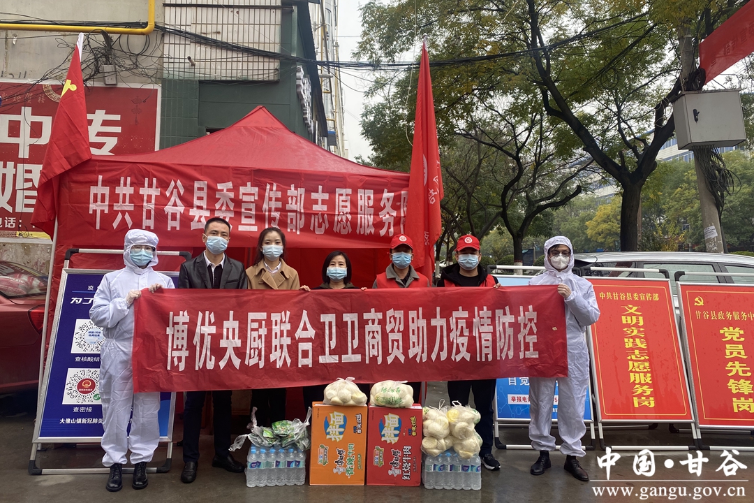 疫情防控期間,在甘谷縣大街小巷隨處可見防疫人員忙碌穿梭的身影。近日,甘谷縣商務(wù)局?jǐn)y手博優(yōu)餐飲中央廚房有限公司、衛(wèi)衛(wèi)商貿(mào)有限公司等企業(yè)為防疫一線工作人員送去了愛心物資,彰顯了人間大愛。
