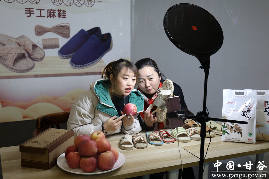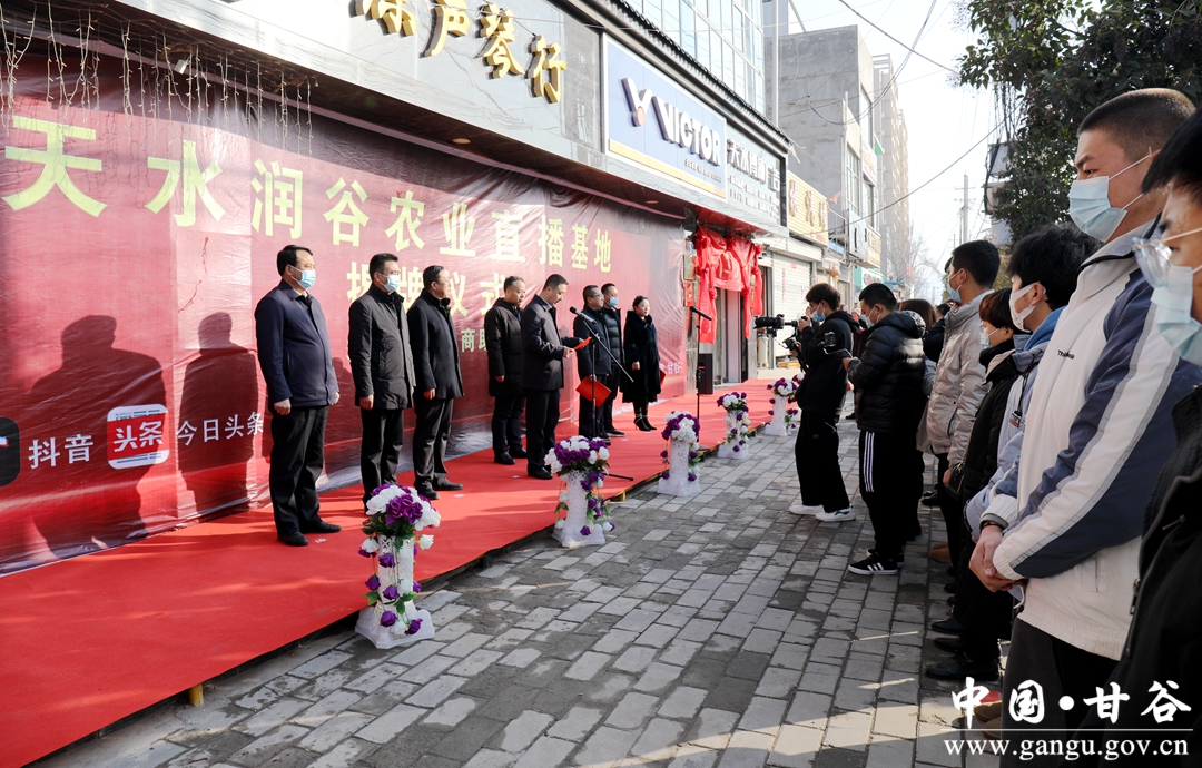 12月12日,甘谷縣舉行天水潤谷農(nóng)業(yè)直播基地揭牌儀式,這是全縣深化電商幫扶、助農(nóng)增收的具體行動,也是宣傳推介甘谷農(nóng)特產(chǎn)品、提升產(chǎn)業(yè)效益水平的重大舉措,有效助推全縣電商產(chǎn)業(yè)轉(zhuǎn)型升級、助力鄉(xiāng)村振興。市商務(wù)局副局長石劭,縣委常委、統(tǒng)戰(zhàn)部部長王見學(xué),縣人大常委會副主任陳旭,縣政協(xié)副主席田小龍為潤谷農(nóng)業(yè)直播基地揭牌。
