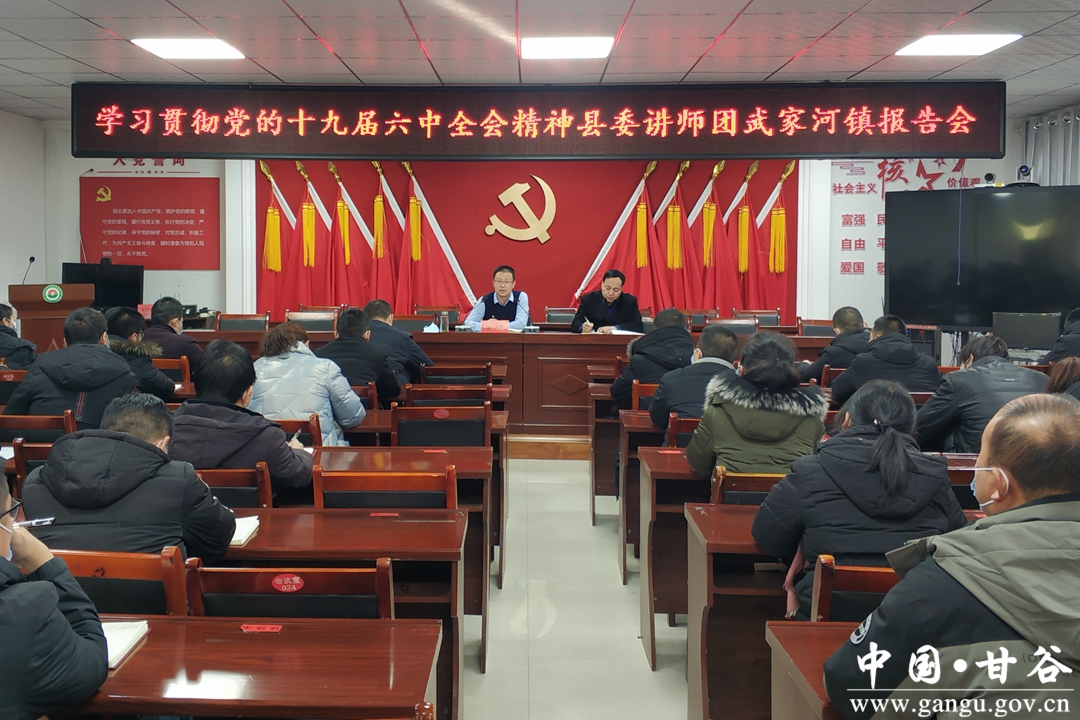 12月30日,甘谷縣副縣長金輝深入武家河鎮(zhèn)宣講黨的十九屆六中全會精神,武家河鎮(zhèn)全體干部、駐村幫扶工作隊員、各村黨支部書記參加會議。