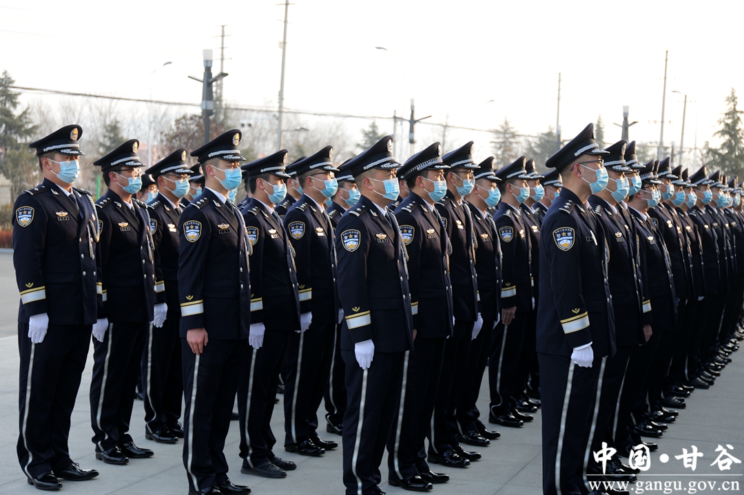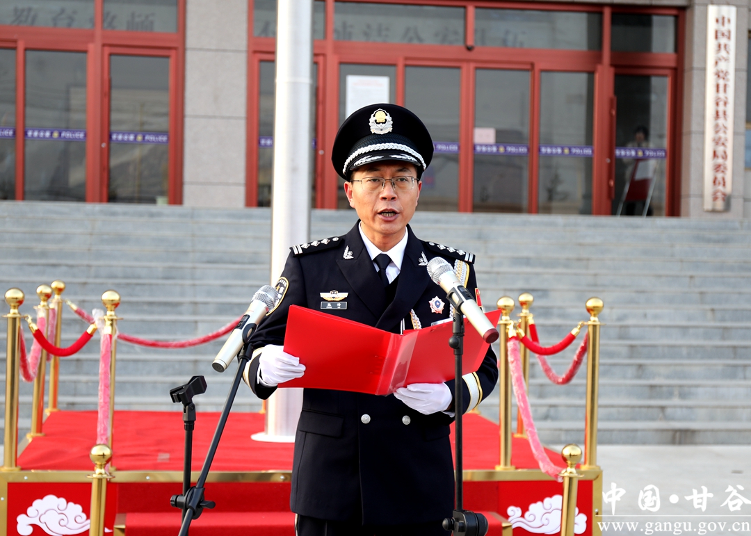 “我宣誓:堅(jiān)決擁護(hù)中國(guó)共產(chǎn)黨的絕對(duì)領(lǐng)導(dǎo),矢志獻(xiàn)身崇高的人民公安事業(yè),對(duì)黨忠誠(chéng)、服務(wù)人民、執(zhí)法公正、紀(jì)律嚴(yán)明……”1月10日,甘谷縣公安局隆重舉行升警旗暨警禮服列裝儀式慶祝中國(guó)人民警察節(jié)。副縣長(zhǎng)、縣公安局黨委書記、局長(zhǎng)張濤出席儀式并致辭,在家局領(lǐng)導(dǎo)、各所隊(duì)室全體民警共計(jì)260余人參加儀式。