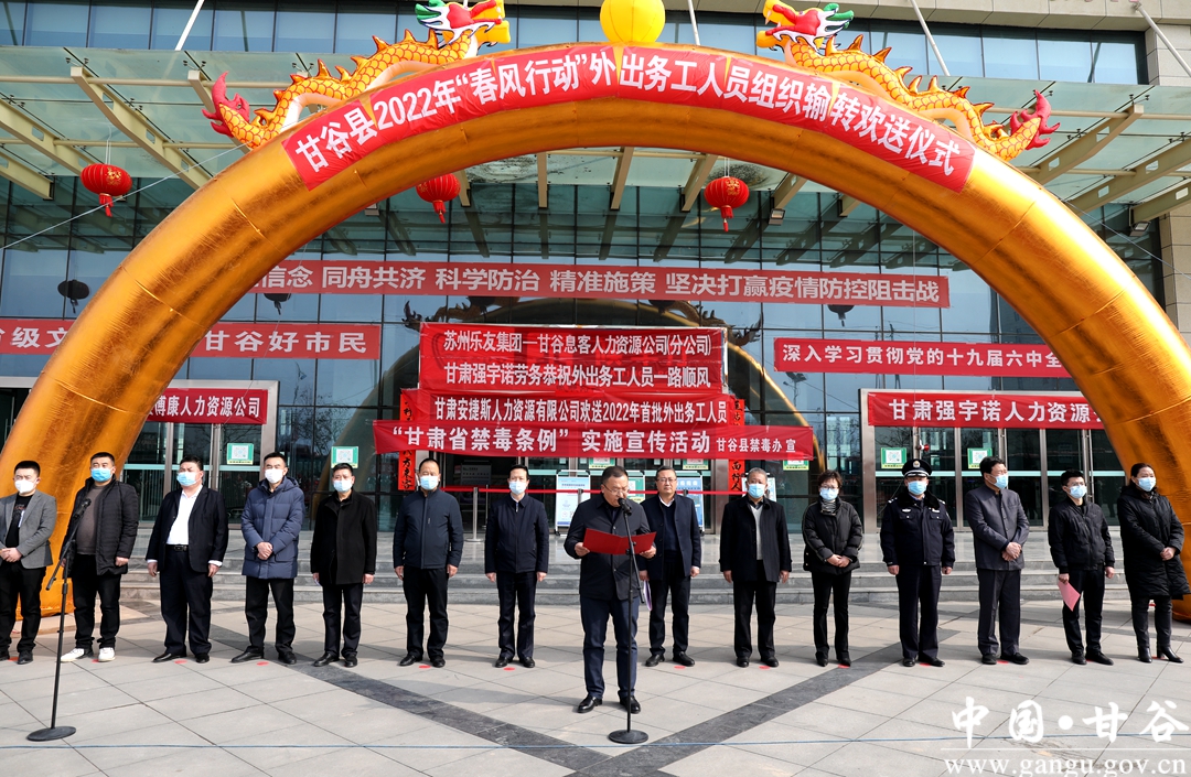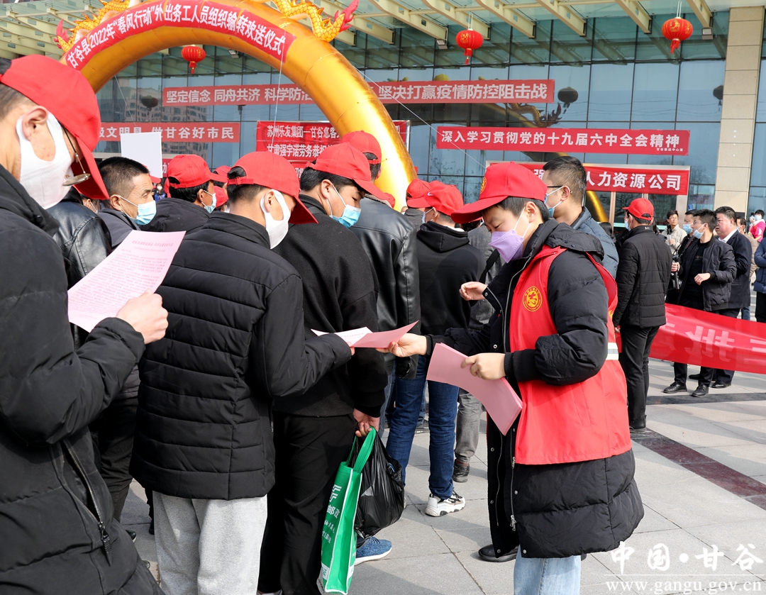 2月10日,甘谷縣2022年“春風(fēng)行動(dòng)”外出務(wù)工人員歡送儀式在客運(yùn)中心廣場(chǎng)隆重舉行,集中歡送500多名務(wù)工人員赴江蘇、寧波、浙江等地務(wù)工就業(yè)?h委常委、組織部長(zhǎng)李斌斌出席儀式并講話,副縣長(zhǎng)劉強(qiáng)主持歡送儀式。縣人社局、縣總工會(huì)、中國郵政甘谷分公司等單位負(fù)責(zé)同志及人力資源企業(yè)代表參加活動(dòng)。