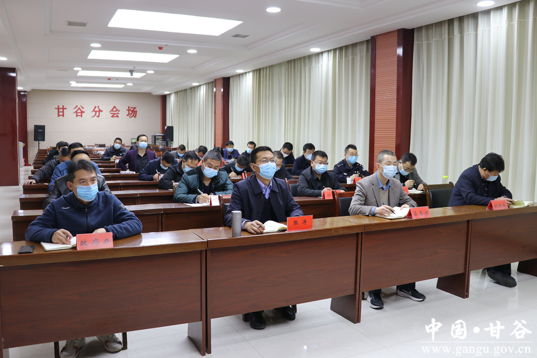 副縣長、縣公安局局長張濤在甘谷分會場參加會議。