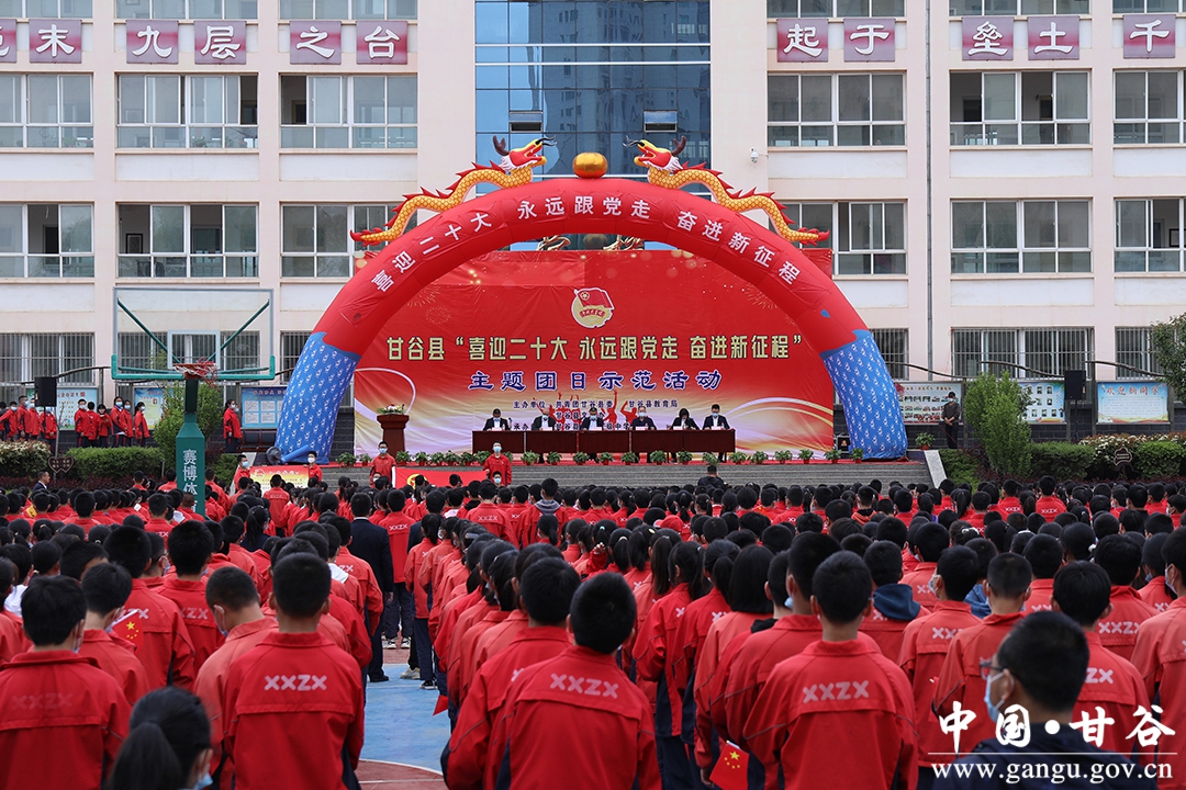 4月26日,由共青團(tuán)甘谷縣委、縣教育局、縣文明辦主辦的2022年“喜迎二十大、永遠(yuǎn)跟黨走、奮進(jìn)新征程”主題團(tuán)日示范活動(dòng)在新興中學(xué)開展?h委副書記林如海出席活動(dòng)并講話,團(tuán)縣委、縣教育局、縣文明辦等單位負(fù)責(zé)人及2022年新發(fā)展團(tuán)員代表、新興中學(xué)部分師生代表共計(jì)1500余人參加活動(dòng)。