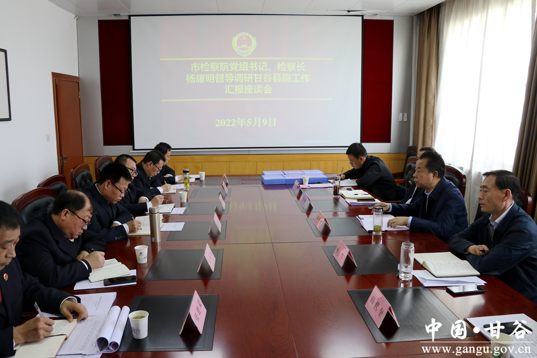 5月9日,市檢察院黨組書記、檢察長(zhǎng)楊耀明一行調(diào)研指導(dǎo)甘谷縣檢察院工作?h委常委、政法委書記杜興一同調(diào)研。