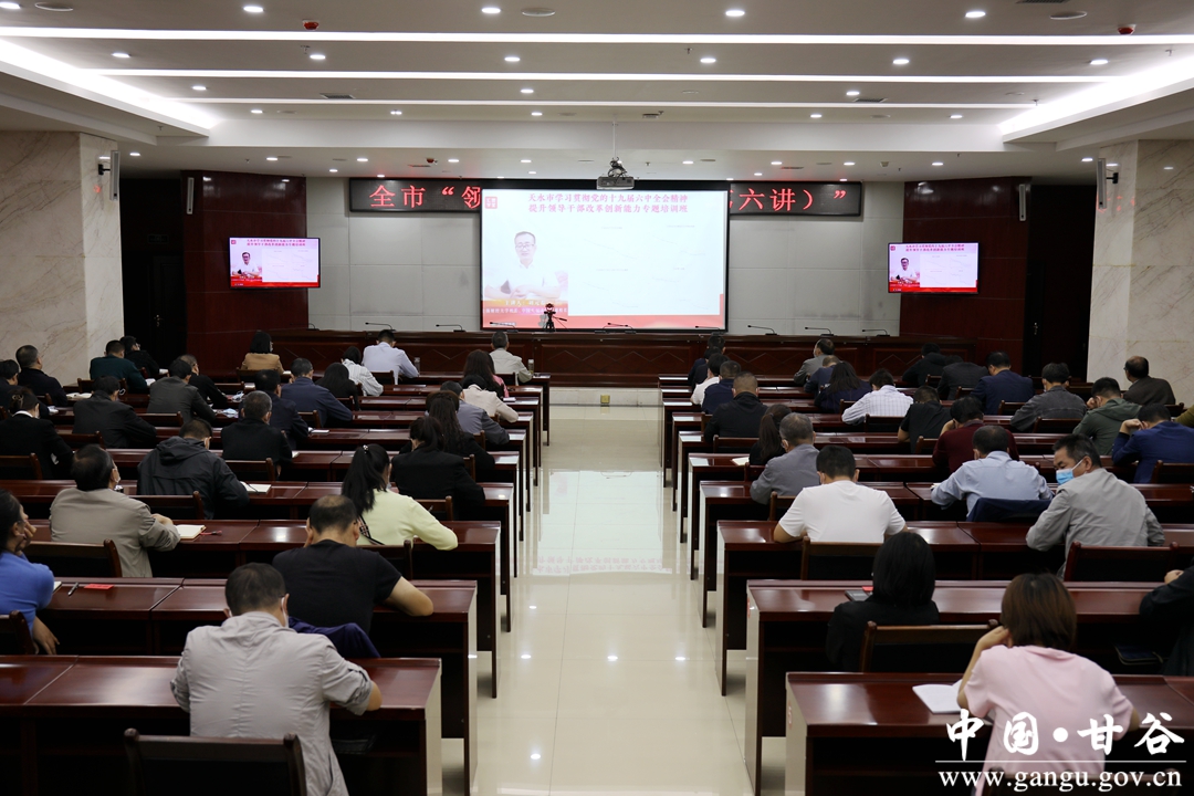 縣人大常委會(huì)副主任薛希武、副縣長(zhǎng)龐新志、縣政協(xié)副主席魏杰在甘谷分會(huì)場(chǎng)參加講座。