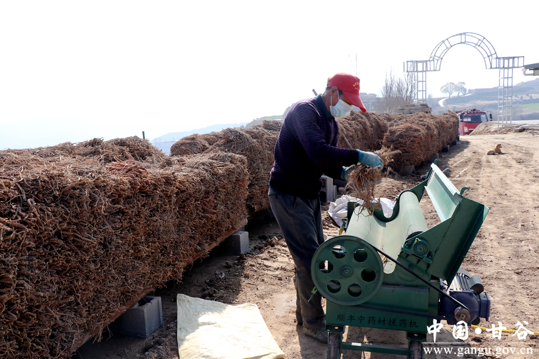 位于禮辛鎮(zhèn)南山片區(qū)的甘谷縣玉順種養(yǎng)農民專業(yè)合作社是全鎮(zhèn)較大的中藥材種植基地,合作社今年大規(guī)模種植了黃芪、黨參等多種藥材,藥材經過篩剪扎捆和掛串晾曬加工,很好的保留了藥性、提升了品質和產品附加值。