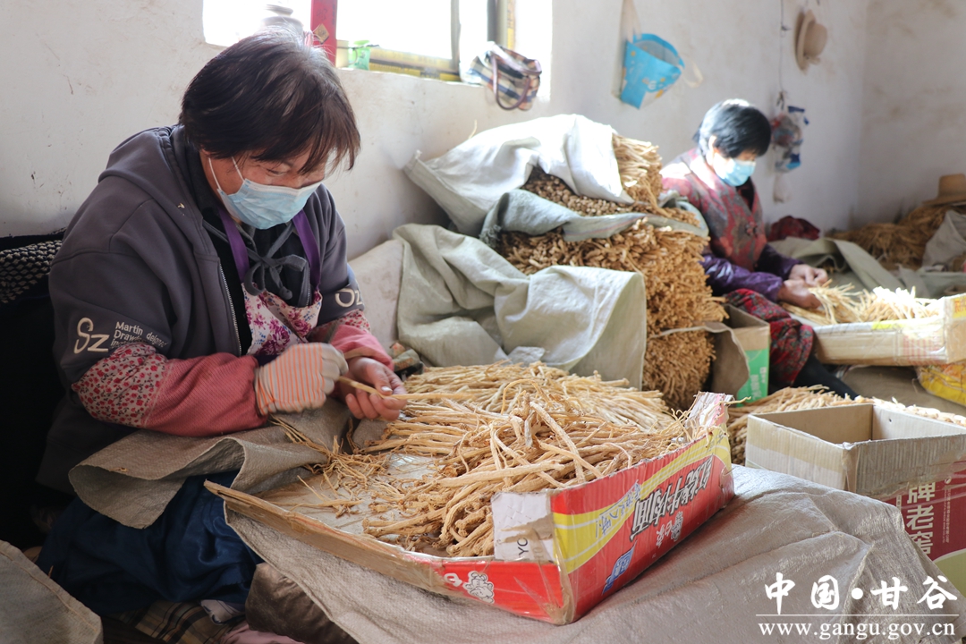 而在甘谷縣爍爍種植農民專業(yè)合作社,負責人賈萬同正在指導20多名工人修剪、篩分一捆捆晾曬的黃芪,在工人初加工后,分成不同等次的黃芪,再經過一段時間的晾曬便可進行銷售。