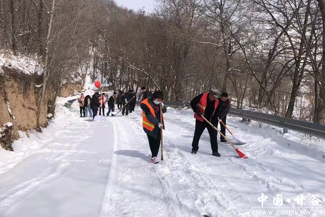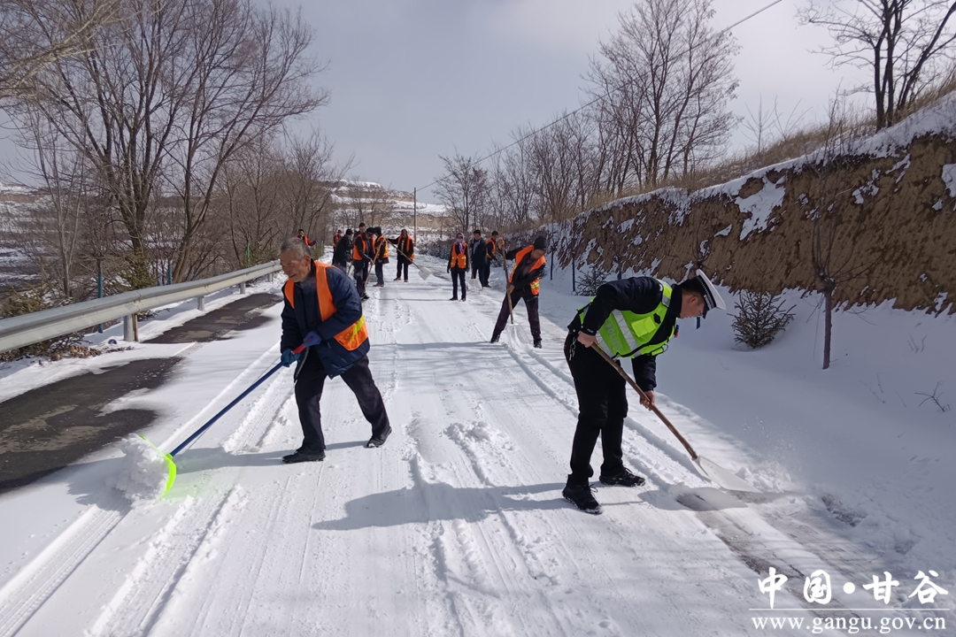 活動中,全體黨員干部群眾堅持以無漏段、無積冰、無殘雪、路面見底色為標準,不懼嚴寒、通力合作,配合默契、干勁十足,利用掃把、鐵鍬、雪鏟等工具,有序清理路面上的積雪、暗冰,累計清掃道路80余公里、險段32處,為群眾安全出行開辟出了一條“平安路”“暖心路”。