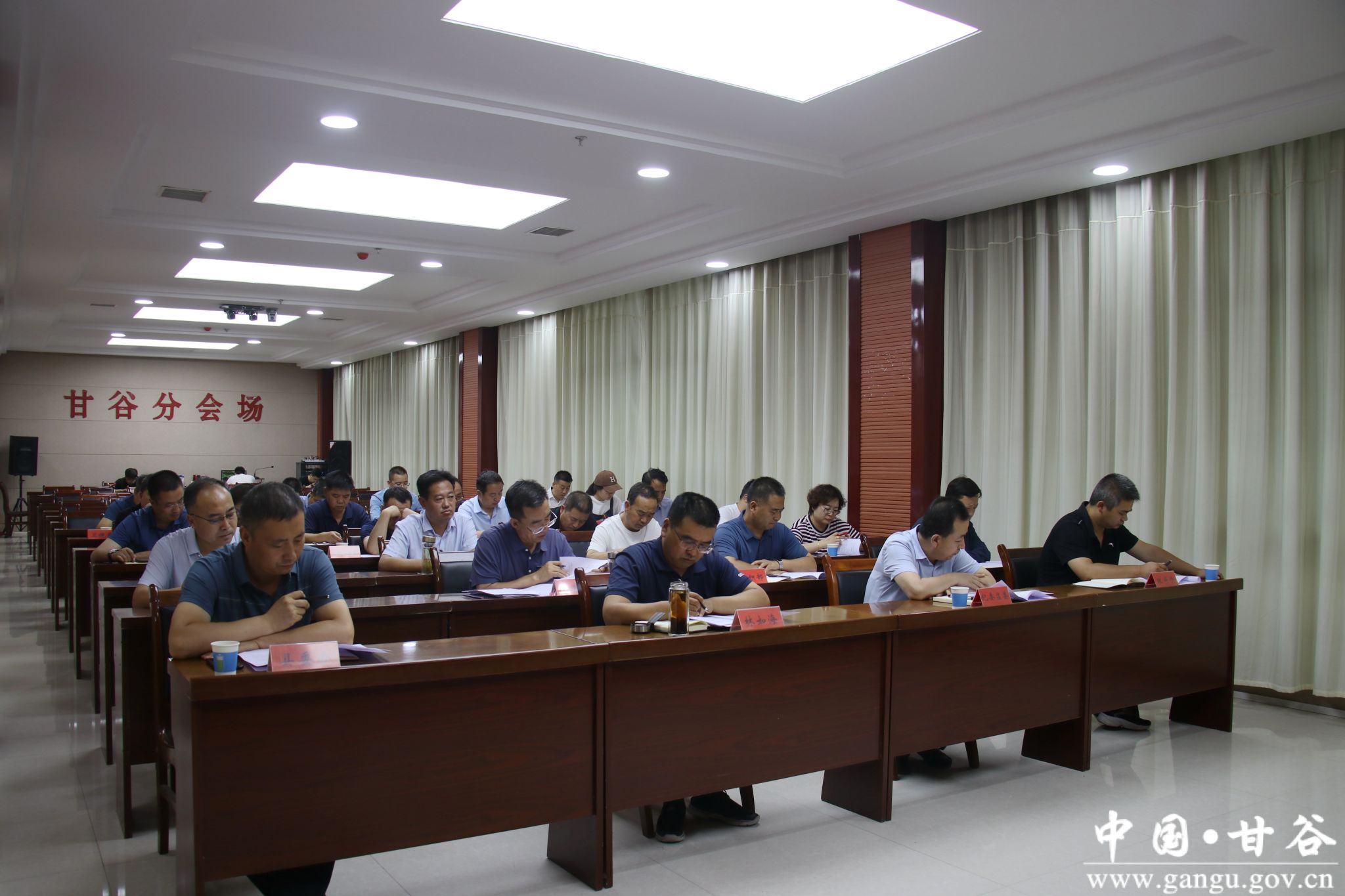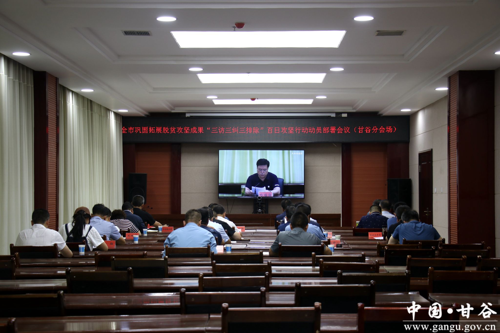 縣委副書記林如海在甘谷分會場參加會議。
