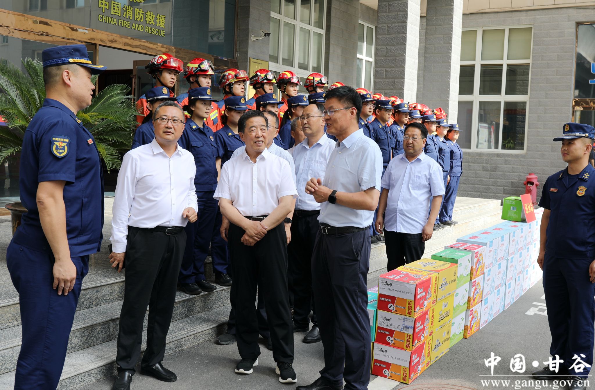 在“八一”建軍節(jié)來臨之際,7月28日,縣委副書記、縣長孫忠平,縣政協(xié)主席曹明忠?guī)еh四大組織和全縣人民的深情厚誼,走訪慰問了縣消防救援大隊(duì)、縣人武部和武警中隊(duì),為他們送去慰問金及慰問物資,向他們致以崇高的敬意和節(jié)日的問候,向廣大官兵長期以來忠于職守、勇挑重?fù)?dān),為甘谷縣經(jīng)濟(jì)社會(huì)發(fā)展作出的貢獻(xiàn)表示真摯感謝?h委常委、政法委書記劉強(qiáng),縣人大常委會(huì)副主任王新民,縣政協(xié)副主席郭有生一同慰問。