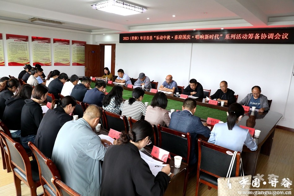 9月8日,甘谷縣召開喜迎中秋國慶系列活動(dòng)籌備動(dòng)員會(huì)議,全面貫徹落實(shí)中央和省、市黨委、政府喜迎中秋國慶相關(guān)重點(diǎn)文化活動(dòng)工作部署要求,進(jìn)一步統(tǒng)一思想、凝聚共識(shí)、細(xì)化任務(wù),動(dòng)員全縣各有關(guān)部門、鄉(xiāng)鎮(zhèn)迅速行動(dòng)起來,以高度的責(zé)任感和使命感投入到系列慶祝活動(dòng)中來?h委宣傳部、縣文旅局及各有關(guān)部門(單位)和鄉(xiāng)鎮(zhèn)分管領(lǐng)導(dǎo)參加會(huì)議。