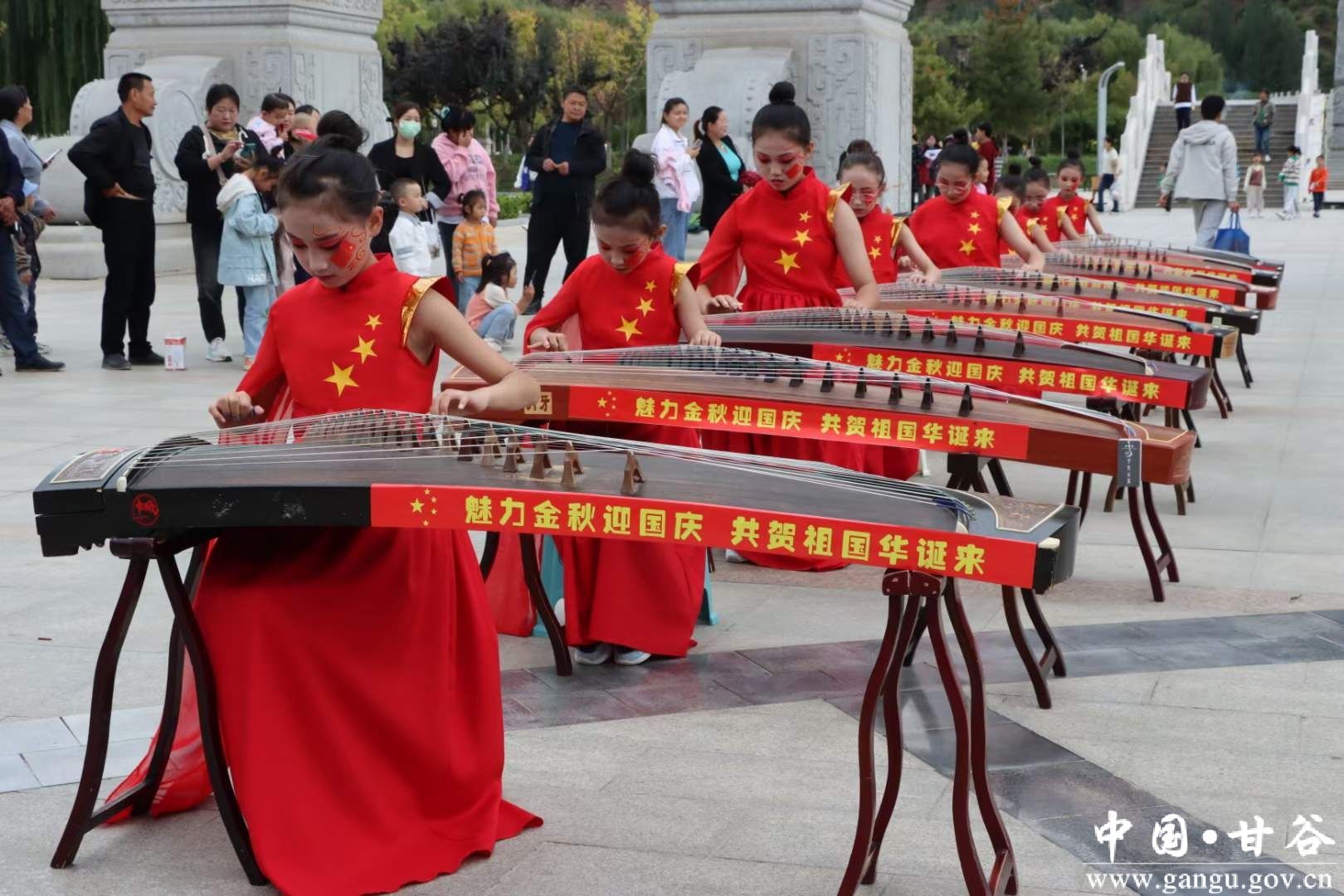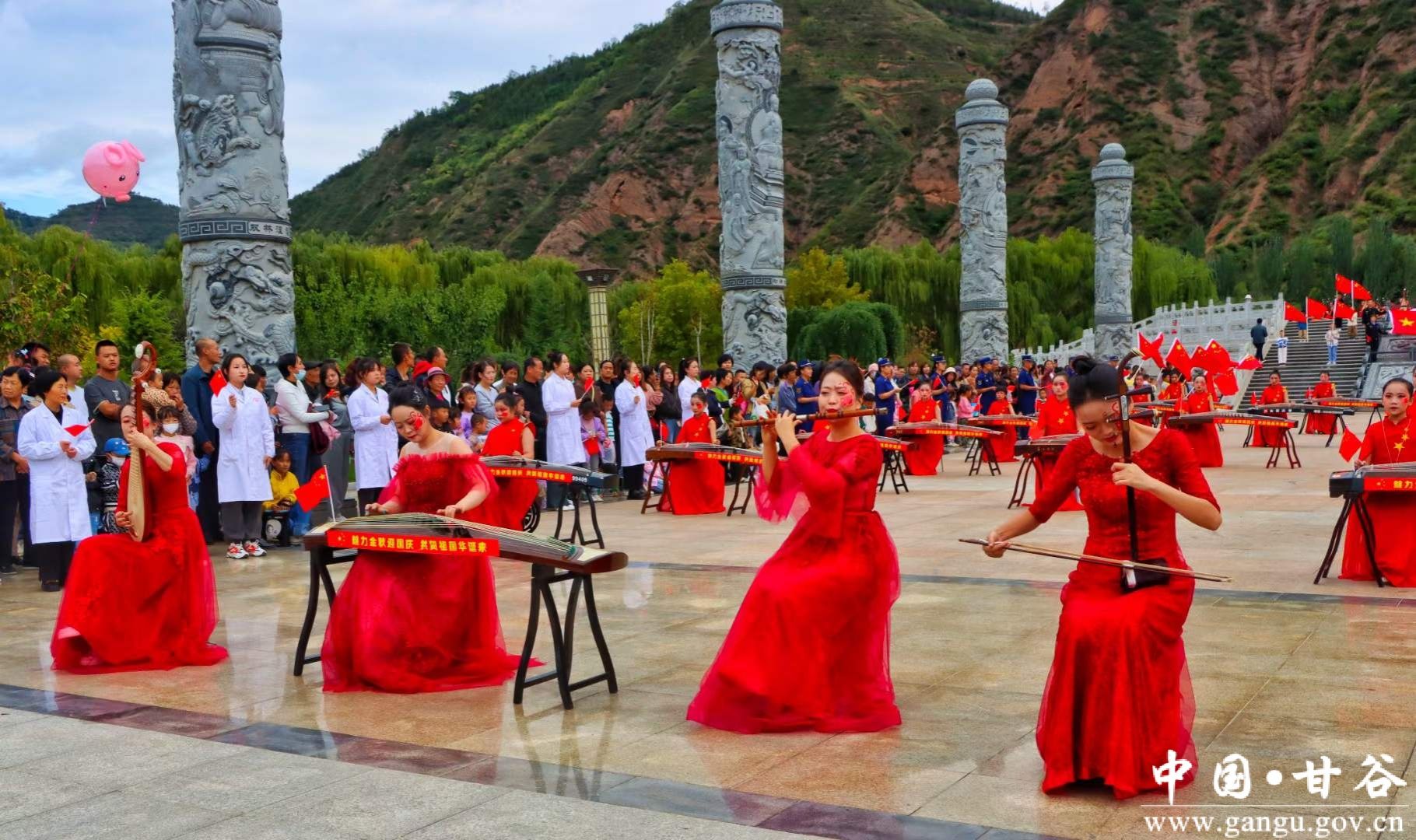 9月24日,在國慶節(jié)來臨之際,甘谷縣150多名青少年在大像山旅游景區(qū)共同演奏《我和我的祖國》,為祖國生日獻禮。
