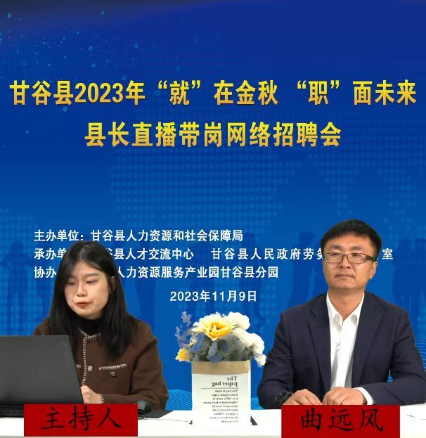 11月9日,甘谷縣2023年“就”在金秋 “職”面未來縣長直播帶崗招聘會在天水人力資源服務產(chǎn)業(yè)園甘谷分園舉辦,副縣長曲遠風出席活動并致辭。