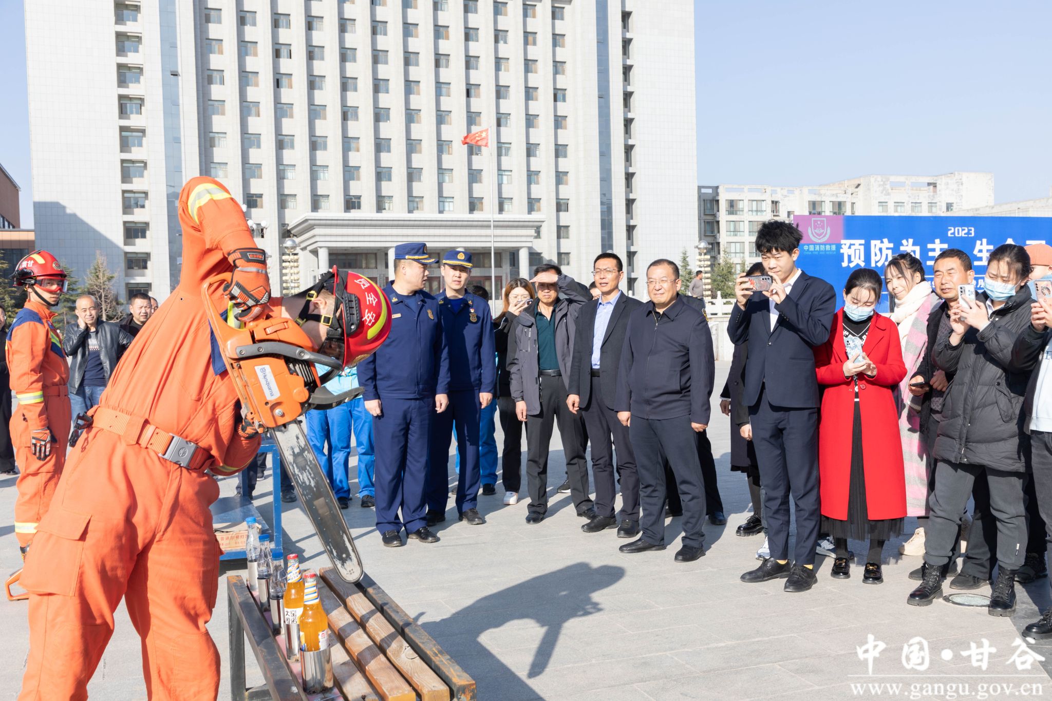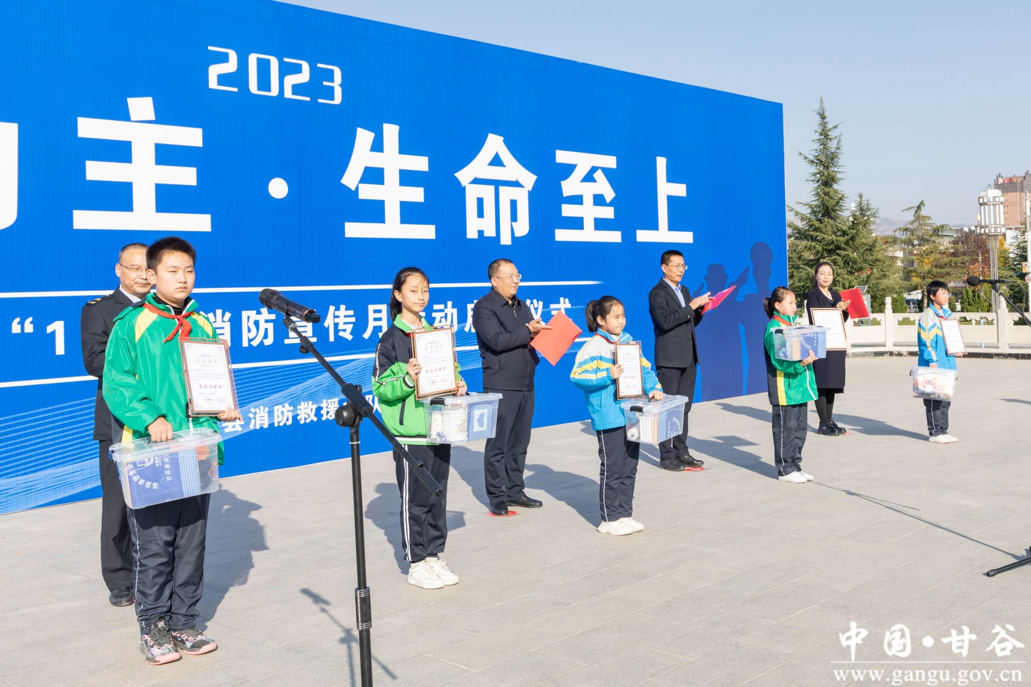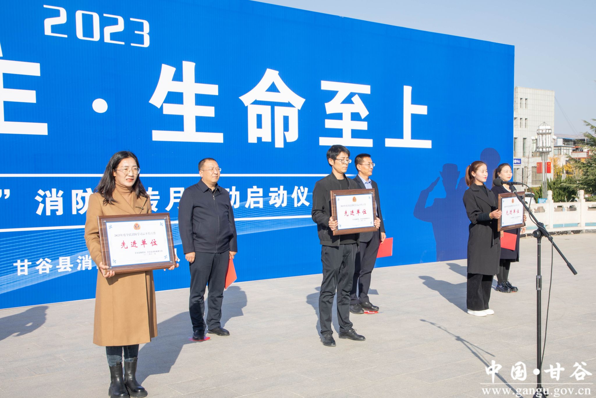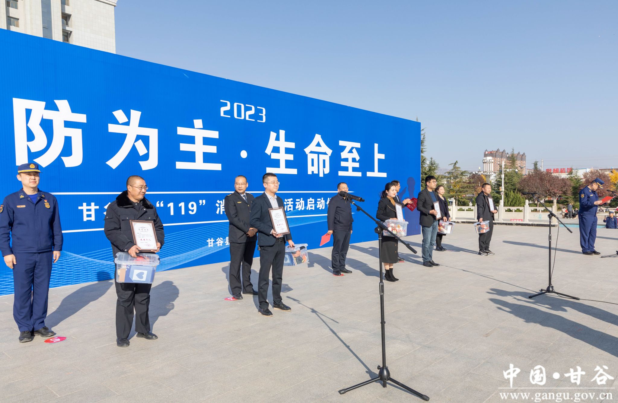 (縣委常委、副縣長(zhǎng)李斌斌致辭并宣布甘谷縣2023年“119”消防宣傳月活動(dòng)啟動(dòng))