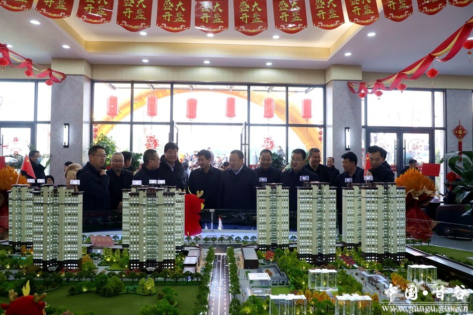新甘谷訊【記者張賓】1月1日,甘谷縣姚莊片區(qū)城市更新項目一期(渭濱福。╅_盤儀式舉行?h委常委、副縣長李斌斌宣布開盤?h委常委、政法委書記劉強,縣人大常委會副主任董寶玉,縣政協(xié)副主席魏杰出席。冀城集團全體干部職工及甘肅五建集團代表、認籌客戶和意向客戶參加開盤儀式。