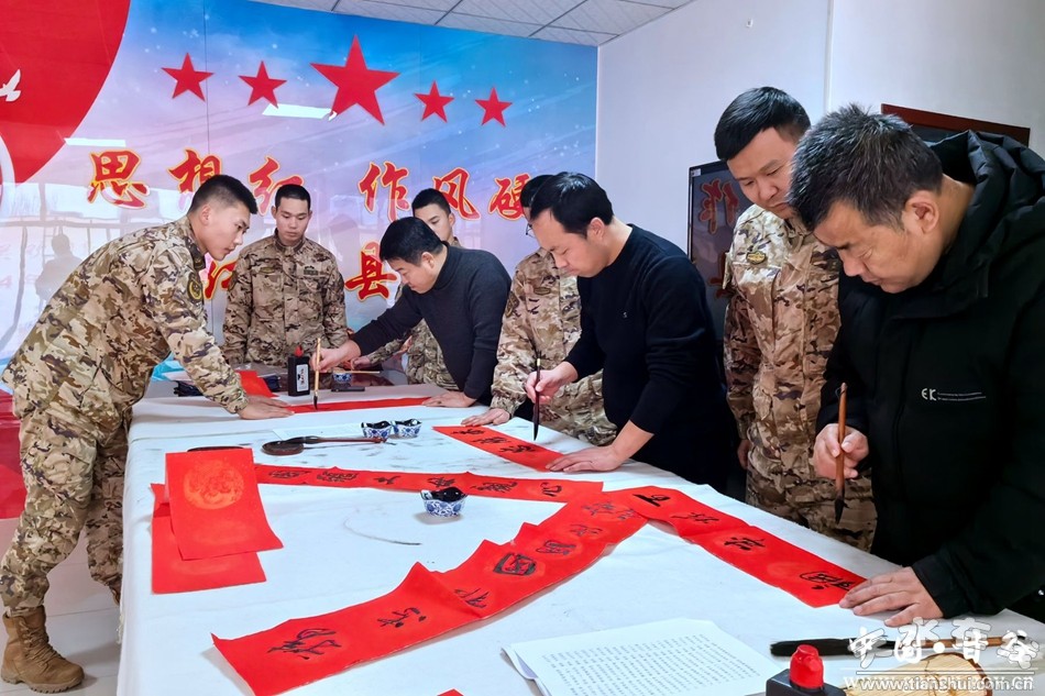 在武警中隊(duì)慰問中,同時(shí)開展了迎新春雙擁文藝演出和送書畫進(jìn)軍營活動(dòng)。與會(huì)領(lǐng)導(dǎo)和部隊(duì)官兵共同觀看了文藝演出,縣文聯(lián)書畫家為部隊(duì)贈(zèng)送了書畫作品。通過文藝匯演和書畫藝術(shù)形式,傳承發(fā)揚(yáng)軍愛民、民擁軍光榮傳統(tǒng),密切軍民魚水情誼,推進(jìn)軍地文化共同發(fā)展,讓駐縣部隊(duì)官兵深切感受到第二故鄉(xiāng)人民群眾的深情厚誼。