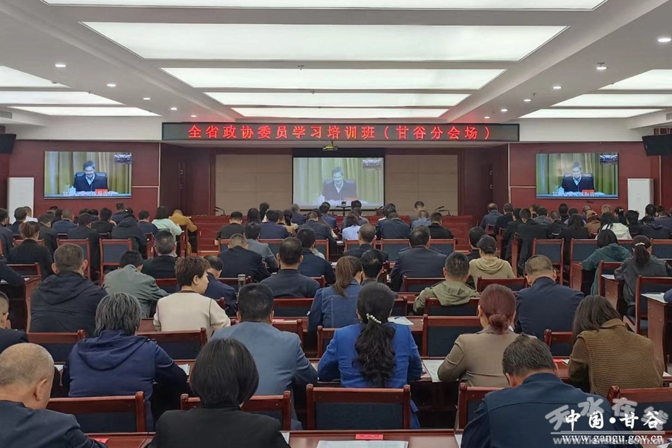 學習培訓班在各市州、縣區(qū)設(shè)分會場?h政協(xié)黨組書記、主席令軍強,縣政協(xié)副主席馬清平、魏杰、郭有生、李文定、張菊蓮及全體政協(xié)委員、政協(xié)機關(guān)干部在甘谷分會場參加培訓。