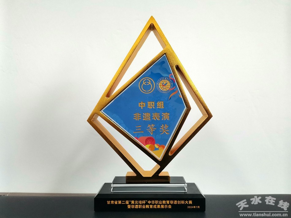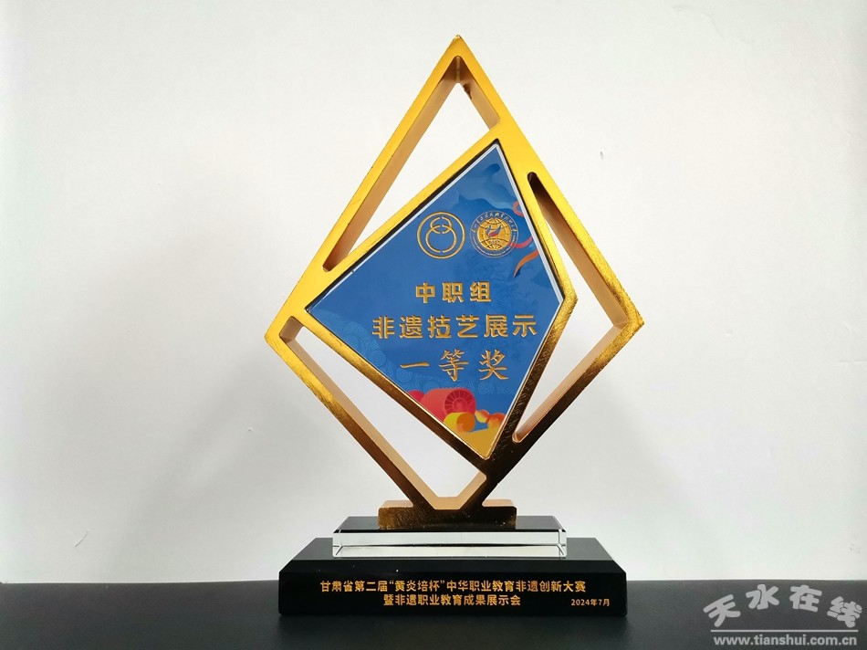 新甘谷訊【通訊員謝保紅嚴(yán)文文】7月14日,由省教育廳、省民族事務(wù)委員會等7部門主辦,蘭州資源環(huán)境職業(yè)技術(shù)大學(xué)承辦的甘肅省第二屆“黃炎培杯”中華職業(yè)教育非遺創(chuàng)新大賽暨非遺職業(yè)教育成果展示會在蘭州市東方紅廣場舉辦。甘谷縣職業(yè)中等專業(yè)學(xué)校選送的作品榮獲中職組非遺技藝展示一等獎1項,中職組非遺表演三等獎1項。