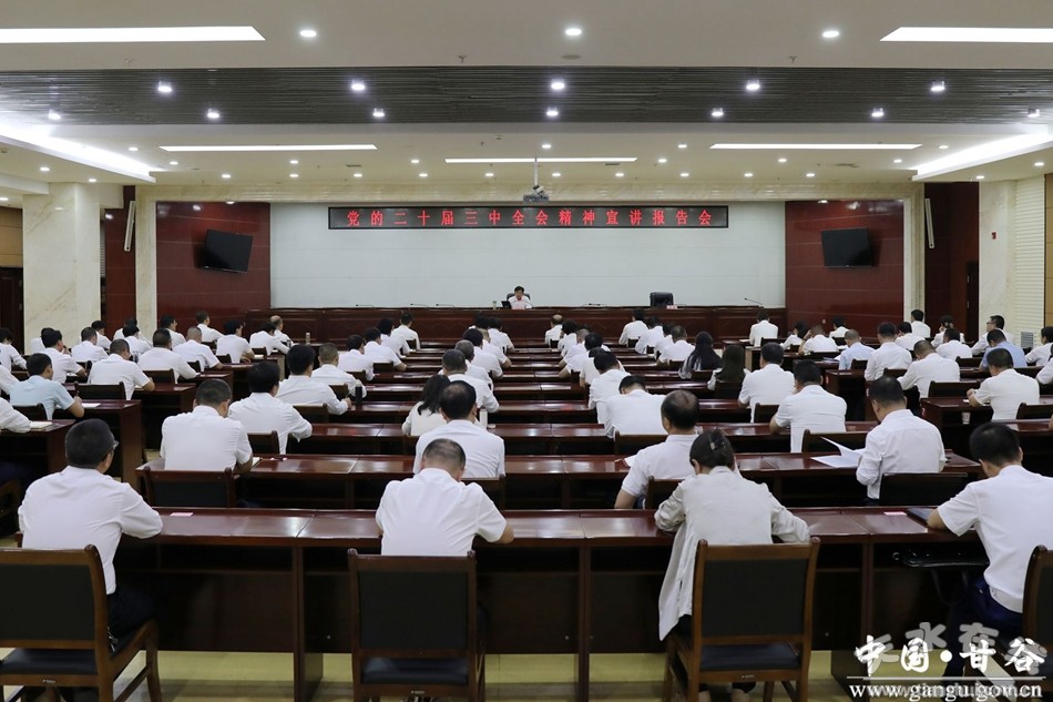 新甘谷訊【記者黃鑫】8月23日,市委副書記楊曉鋒在甘谷縣宣講黨的二十屆三中全會(huì)精神時(shí)強(qiáng)調(diào),要深入學(xué)習(xí)宣傳貫徹黨的二十屆三中全會(huì)精神,深刻領(lǐng)會(huì)習(xí)近平總書記關(guān)于全面深化改革的一系列新思想、新觀點(diǎn)、新論斷,準(zhǔn)確理解《決定》的豐富內(nèi)涵和核心要義,切實(shí)用改革的新進(jìn)展添動(dòng)力破局突圍,以發(fā)展的新成效聚共識(shí)加速追趕,在進(jìn)一步全面深化改革、推進(jìn)中國(guó)式現(xiàn)代化天水實(shí)踐中做出更大貢獻(xiàn)。