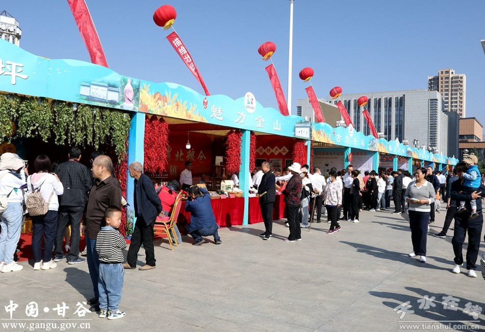 穿行在冀城廣場(chǎng)農(nóng)特產(chǎn)品展銷區(qū),一名名勞作的農(nóng)民,一道道可口的美食,甘谷特有的文化元素、人文風(fēng)情、食品品牌盡顯眼前,讓人的幸福感油然而生。廣場(chǎng)內(nèi),一步一景,每個(gè)展區(qū)都各具特色,呈現(xiàn)不同鄉(xiāng)風(fēng)民情;所有展區(qū)串起來,就是一幅農(nóng)民勞作、創(chuàng)造、豐收和幸福生活的壯美畫卷,吸引游客紛紛合影留念。