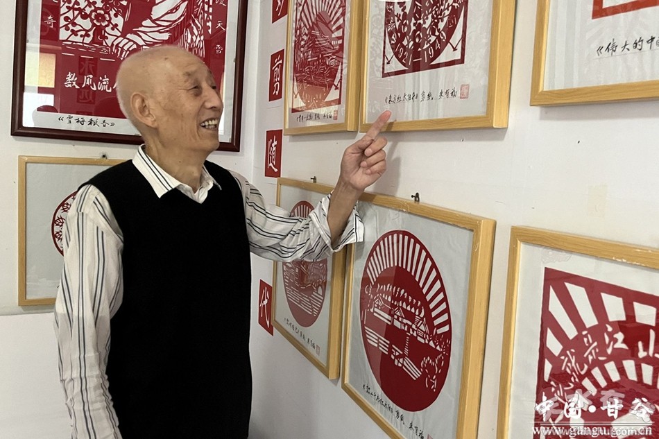 甘谷縣民間剪紙藝人朱有福說:“今年是中華人民共和國(guó)成立75周年。我一生喜歡剪紙,在這慶祝祖國(guó)生日的時(shí)節(jié)我剪了一些首都北京天安門。另外今年是龍年,我剪了一個(gè)龍鳳呈祥和雙龍騰飛,表達(dá)自己對(duì)剪紙藝術(shù)的熱愛。毛主席的這四幅剪紙肖像出了個(gè)郵票,我作為剪紙愛好者,利用我的這個(gè)技能歌頌黨、歌頌祖國(guó)、歌頌人民。”