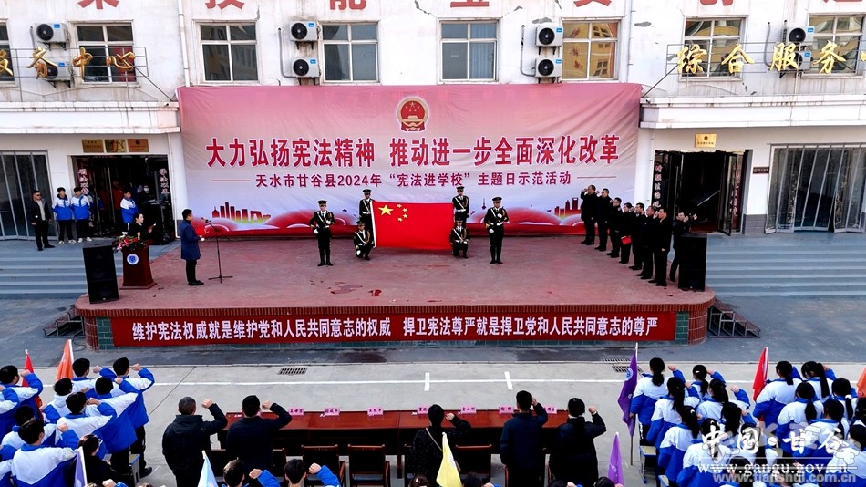 新甘谷訊【記者王永吉】12月3日,甘谷縣2024年“憲法進(jìn)學(xué)校”主題日示范活動(dòng)在甘谷縣職校舉行,活動(dòng)旨在通過(guò)一系列豐富多彩的活動(dòng),將憲法知識(shí)滲透到學(xué)生的日常生活中,提高他們的憲法意識(shí),促進(jìn)青少年健康成長(zhǎng),成為社會(huì)主義守法公民。副縣長(zhǎng)霍艷平出席活動(dòng)并致辭,縣法院、縣檢察院、縣司法局、縣教育局主要負(fù)責(zé)人及縣職校師生代表參加活動(dòng)。