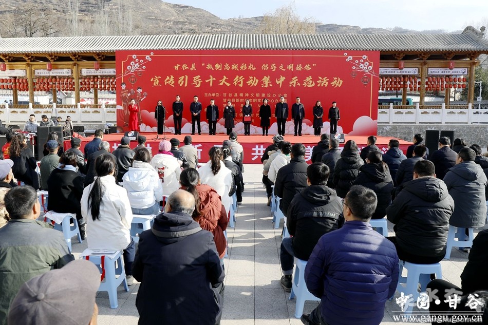 新甘谷訊【記者頡鳳】12月5日,甘谷縣“抵制高額彩禮倡導(dǎo)文明婚俗”宣傳引導(dǎo)十大行動集中示范活動在武家河鎮(zhèn)舉行,縣委常委、宣傳部部長、縣新時代文明實踐中心辦公室主任楊亞君出席活動并講話,縣人大常委會副主任楊曉濤、副縣長霍艷平、縣政協(xié)副主席李文定出席活動。