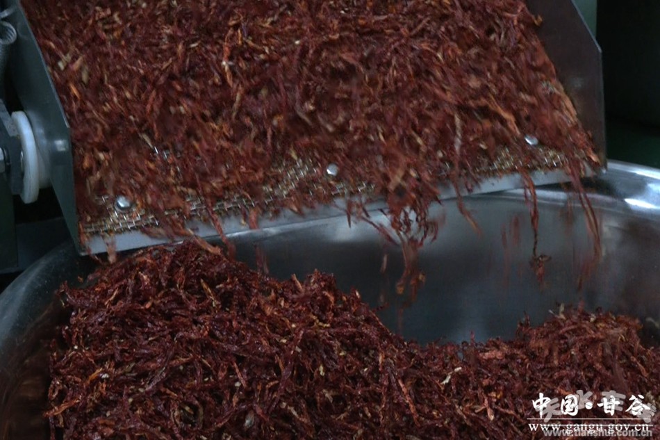 “從秋后到現(xiàn)在,我們收購(gòu)鮮椒有60噸,干辣椒串20噸左右,辣椒原材料是非常充足。每天看著機(jī)器不停地運(yùn)轉(zhuǎn),拉貨送貨的貨車來(lái)來(lái)往往,大家都非常高興,這不是僅僅是我們廠的一大喜事,也是我們甘谷辣椒的大喜事!碧焖畤(guó)昌食品有限公司廠長(zhǎng)何江波說(shuō)。