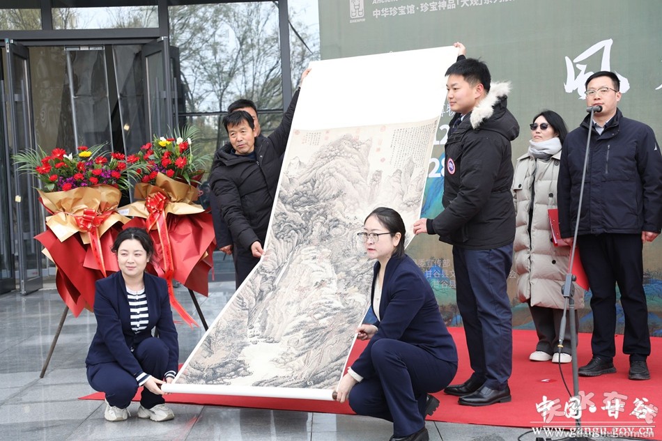 開(kāi)幕式上,策展人天水畫(huà)院畫(huà)家索雨紅介紹了展覽情況;中華珍寶館項(xiàng)目負(fù)責(zé)人董樂(lè)樂(lè)為縣博物館贈(zèng)送作品。隨后,大家一同走進(jìn)博物館,感受珍品名跡所蘊(yùn)含的非凡美學(xué)價(jià)值與迷人風(fēng)采。