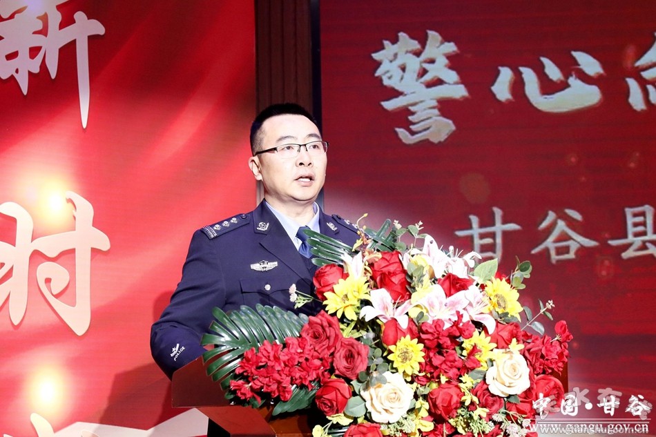 演出現(xiàn)場(chǎng)華燈璀璨、光影交織。在舞蹈《旗開得勝》的激昂奮進(jìn)的旋律中,演出帷幕徐徐拉開。副縣長、公安局黨委書記、局長李羽飛作了熱情洋溢的致辭,向離退休老同志、全體公安民輔警送上節(jié)日的祝福,向廣大家屬和社會(huì)各界致以衷心感謝和良好祝愿,表示甘谷公安將堅(jiān)持以現(xiàn)代警務(wù)建設(shè)為驅(qū)動(dòng),加快形成和提升新質(zhì)戰(zhàn)斗力,奮力推進(jìn)公安工作現(xiàn)代化,為全縣經(jīng)濟(jì)社會(huì)高質(zhì)量發(fā)展保駕護(hù)航。