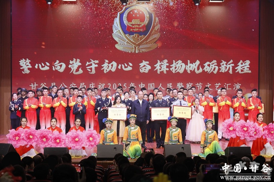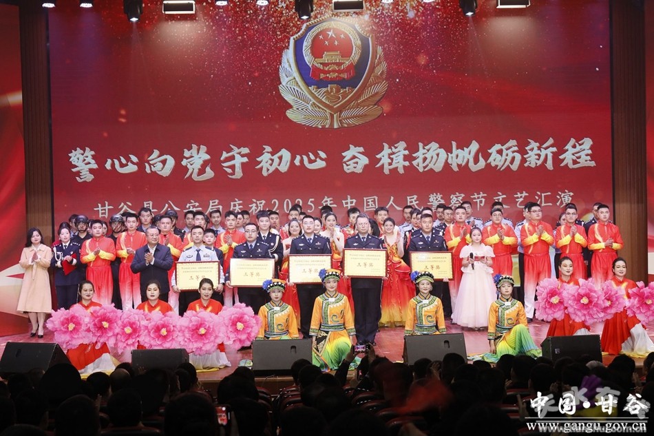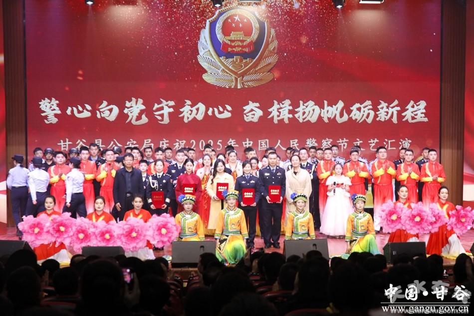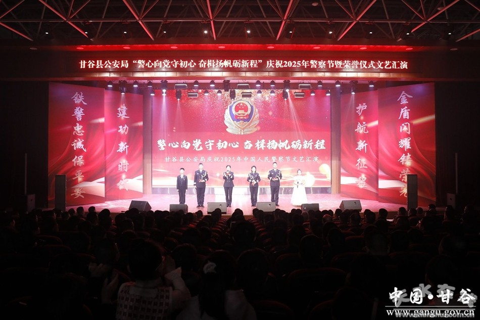 新甘谷訊【記者頡鳳】鼓角聲聲催奮進(jìn),警徽熠熠耀征程。在第五個(gè)中國人民警察節(jié)來臨之際,為全面展現(xiàn)甘谷公安維護(hù)國家政治安全、社會(huì)穩(wěn)定的新?lián)?dāng)、新作為和對(duì)黨忠誠、服務(wù)人民、執(zhí)法公正、紀(jì)律嚴(yán)明的精神風(fēng)貌,切實(shí)激發(fā)廣大民輔警職業(yè)榮譽(yù)感和自豪感,激勵(lì)全警忠誠履職、擔(dān)當(dāng)奮進(jìn),1月9日晚,甘谷縣公安局舉辦“警心向黨守初心,奮楫揚(yáng)帆礪新程”慶祝2025年中國人民警察節(jié)文藝晚會(huì)暨榮譽(yù)授予儀式。