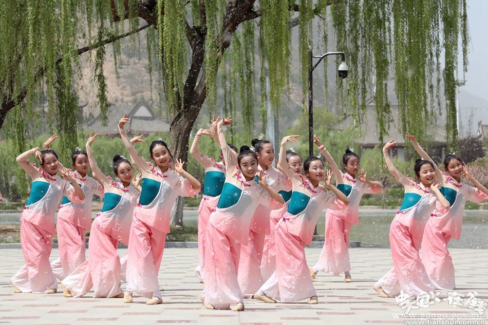 活動現(xiàn)場,來自舞蹈學(xué)校的學(xué)生們身著絢麗多彩的古裝,他們的舞姿輕盈優(yōu)美,配合著公園內(nèi)的亭臺樓閣、綠樹繁花,宛如一幅靈動的山水畫卷,將甘谷的歷史文化與自然風(fēng)光完美融合,讓觀眾們大飽眼福。