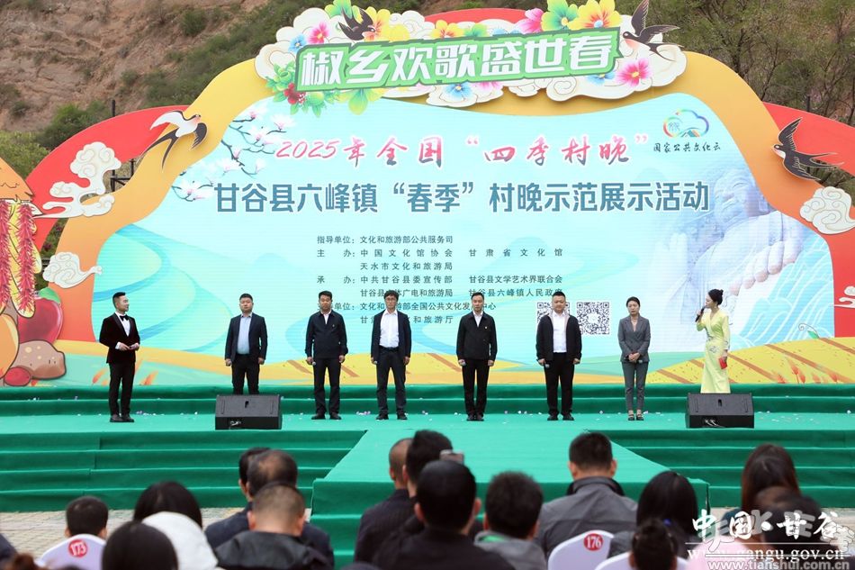 新甘谷訊【記者謝映波】四月的甘谷,春和景明,百花爭(zhēng)艷。4月26日,2025年全國(guó)“四季村晚”甘谷縣六峰鎮(zhèn)“春季”村晚示范展示活動(dòng)在大像山景區(qū)文化廣場(chǎng)舉行,通過現(xiàn)場(chǎng)演出與網(wǎng)絡(luò)直播的形式,為廣大觀眾呈現(xiàn)了一場(chǎng)充滿鄉(xiāng)土氣息與文化魅力的視聽盛宴。