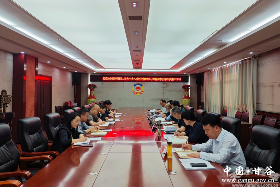 新甘谷訊【記者王菲】按照開展深入貫徹中央八項(xiàng)規(guī)定精神學(xué)習(xí)教育總體安排,5月19日,甘谷縣政協(xié)黨組舉行深入貫徹中央八項(xiàng)規(guī)定精神學(xué)習(xí)教育讀書班第四次集中學(xué)習(xí),認(rèn)真學(xué)習(xí)《習(xí)近平關(guān)于加強(qiáng)黨的作風(fēng)建設(shè)論述摘編》第七至第九專題,同時(shí)結(jié)合思想認(rèn)識(shí)和工作實(shí)際開展交流研討?h政協(xié)黨組書記、主席令軍強(qiáng)主持并講話。