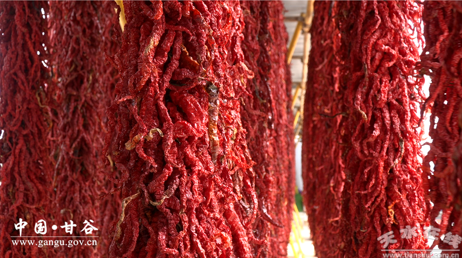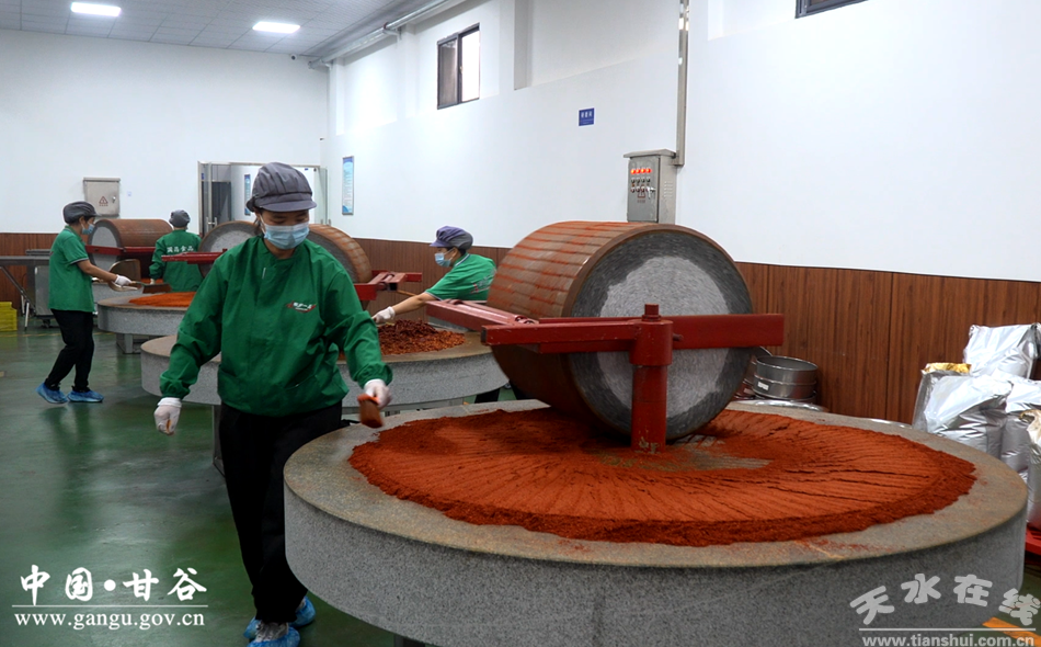 在甘谷縣的一家辣椒加工廠,椒香混合著機器的運轉(zhuǎn)聲撲面而來,新鮮采摘的辣椒在這里經(jīng)過分揀、清洗、烘干等一道道工序,再根據(jù)產(chǎn)品需求,或送入傳統(tǒng)石碾研磨成面,或通過自動化設(shè)備切割成段、成絲,最終變身成為各類深受市場歡迎的辣椒制品。