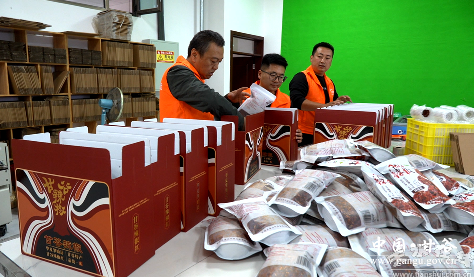加工端“提質(zhì)”,銷售端更要“拓路”。借力新媒體,邀請網(wǎng)紅直播帶貨,讓甘谷辣椒從車間地頭直達消費者餐桌。在甘谷縣的一處電商直播基地里,主播們每天都熱情滿滿地向網(wǎng)友推介甘谷辣椒,這里匯聚了110余種甘谷農(nóng)特產(chǎn)品,其中甘谷辣椒相關(guān)產(chǎn)品占據(jù)重要位置。