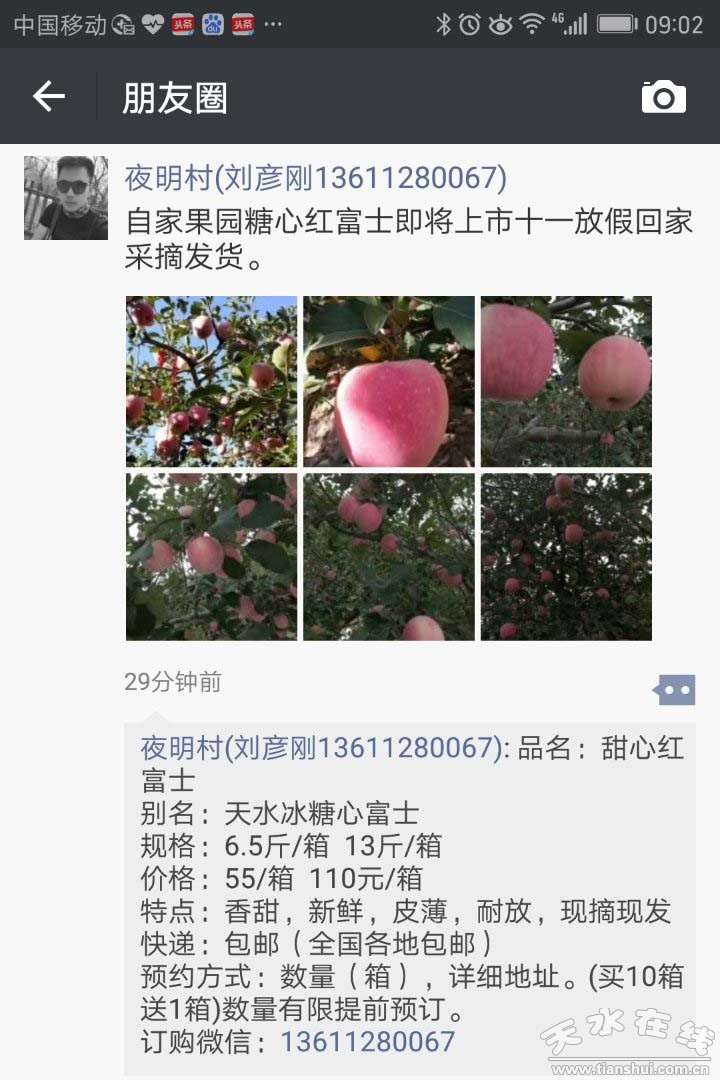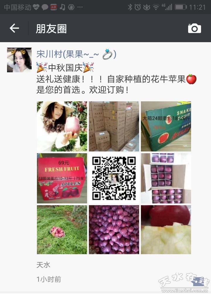 天水在線發(fā)布清水縣郭川鎮(zhèn)宋川村果農(nóng)微信直銷自家花牛蘋果二維碼