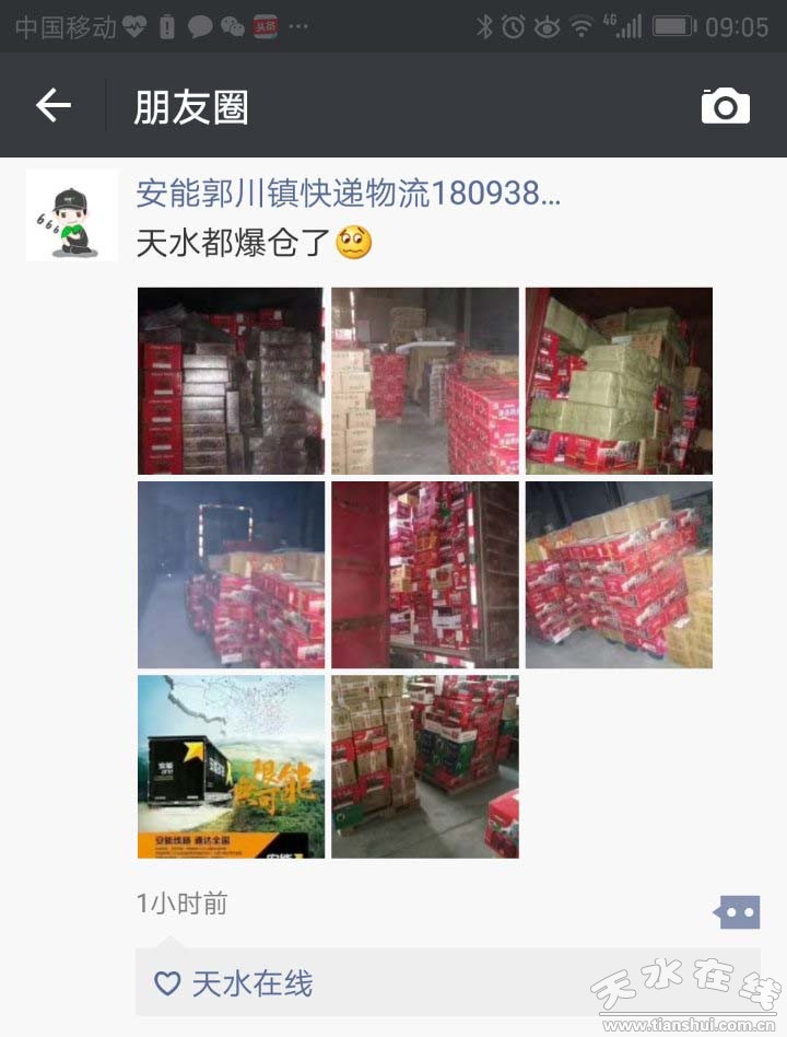(中國郵政天水市郵件處理中心“花牛”爆倉)