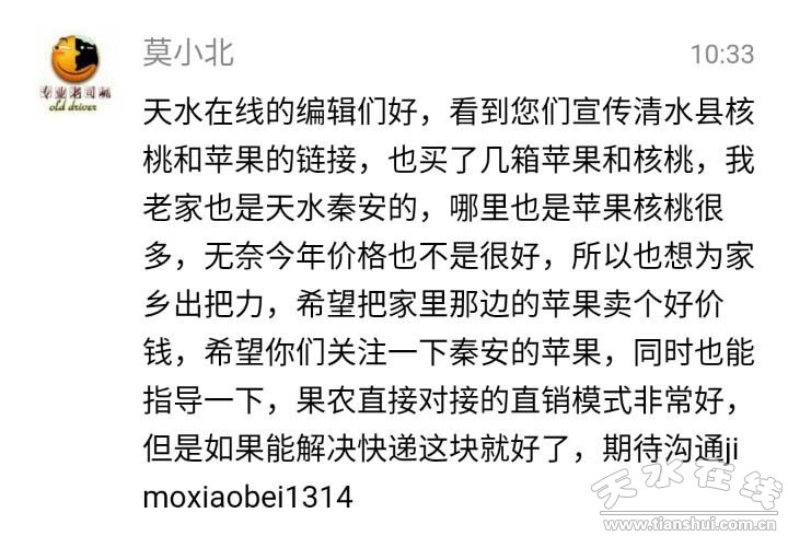 天水在線發(fā)布夜明村果農(nóng)微信直銷花牛蘋果二維碼