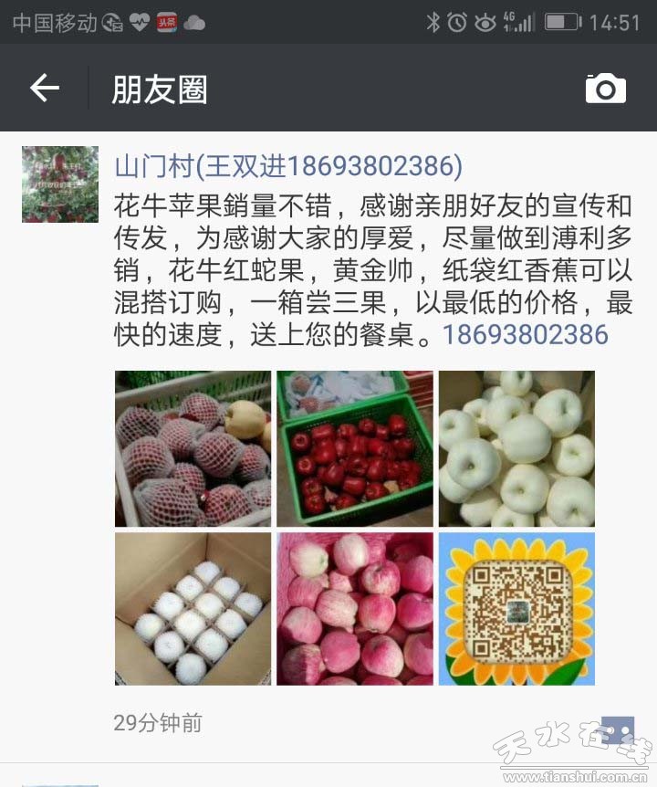天水在線發(fā)布土門鎮(zhèn)周山村果農(nóng)微信直銷花牛蘋果二維碼