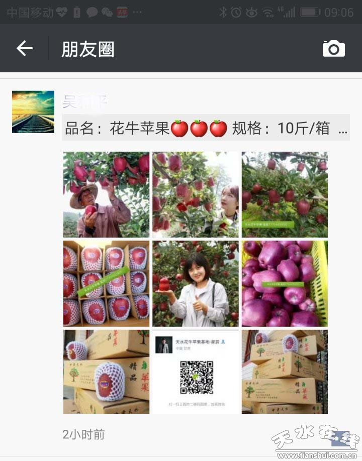 天水在線發(fā)布金集鎮(zhèn)曹溝村果農(nóng)微信直銷花牛蘋果二維碼