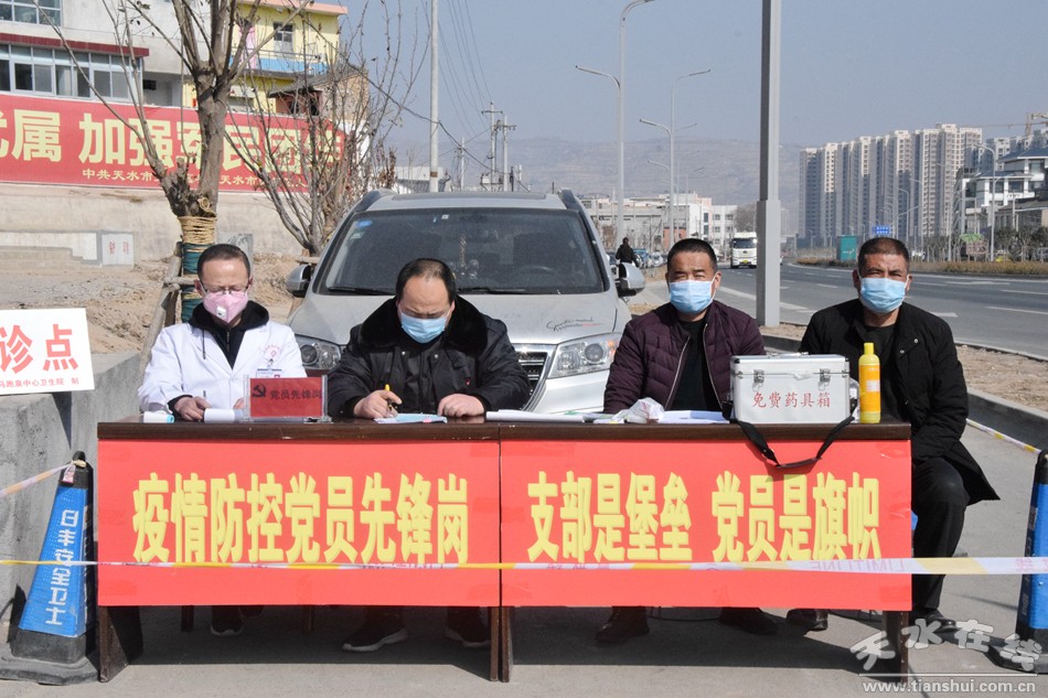 ▲麥積區(qū)馬跑泉鎮(zhèn)團(tuán)莊村第二執(zhí)勤點(diǎn):志愿者張會(huì)全、胡俠南、張小田、郭彥明