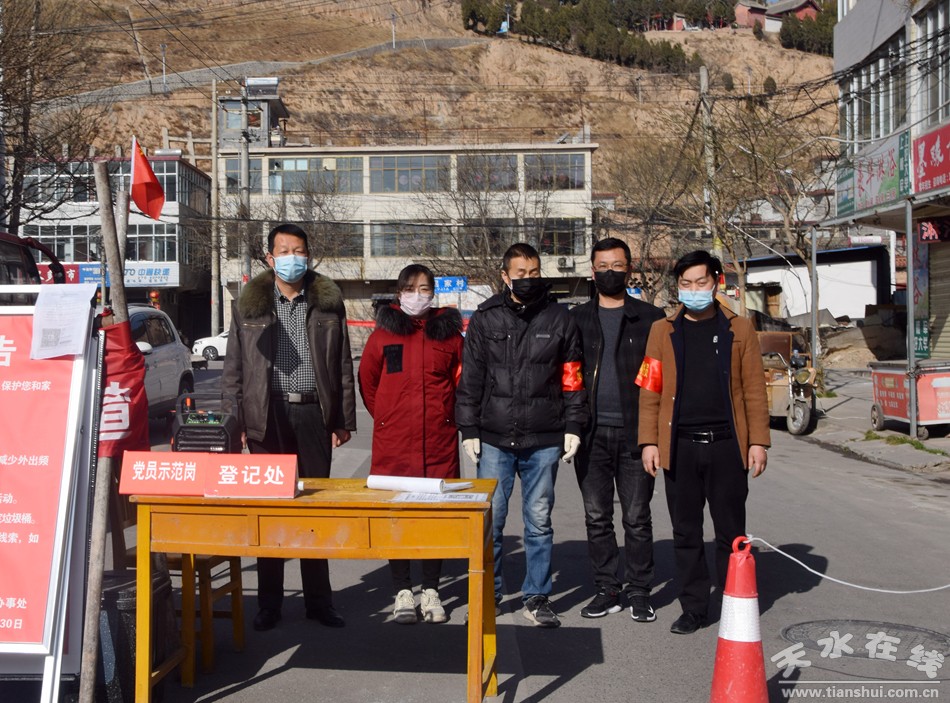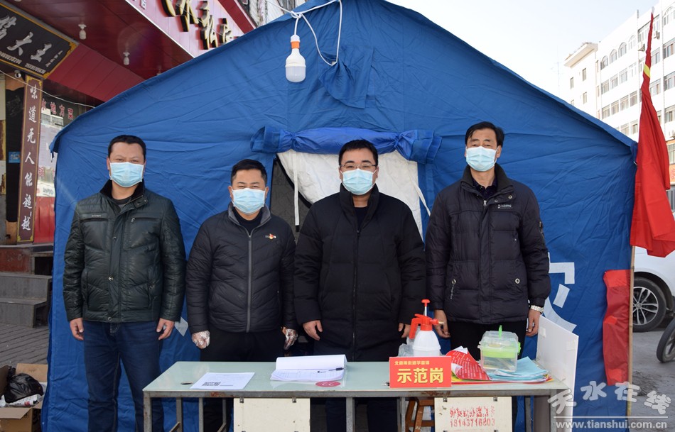 ▲麥積區(qū)道北片區(qū)呂家村防控點(diǎn):呂家村書記呂雙永、第一書記張偉及三位志愿者