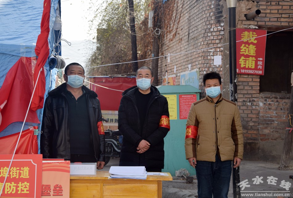 ▲麥積區(qū)渭濱片區(qū)東北大院防控點(diǎn):麥積區(qū)林業(yè)草原局干部鄭小軍、志愿者劉先生、宋先生