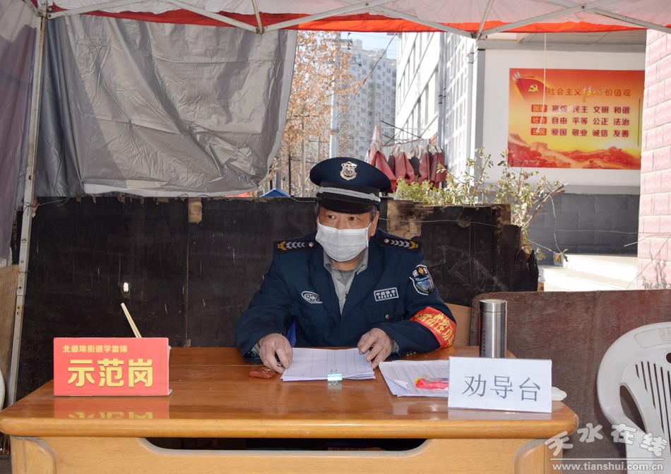 ▲麥積區(qū)仿古街勸導(dǎo)點(diǎn):仿古街市場(chǎng)管理中隊(duì)隊(duì)長(zhǎng)職全平