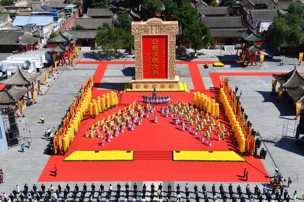 這是6月21日拍攝的公祭伏羲大典現(xiàn)場(無人機(jī)照片)。新華社發(fā)(周文濤攝)