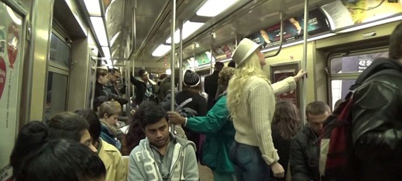 即使在擁擠的地鐵中,也沒人注意到榮格沒穿褲子。(網(wǎng)頁截圖)