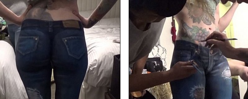 榮格腰部以下都未穿衣物,繪制的“牛仔褲”看起來十分逼真。(網(wǎng)頁截圖)
