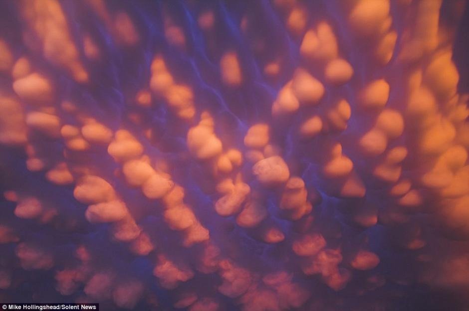 據(jù)英國《每日郵報》11月20日報道,一位來自美國內(nèi)布拉斯加州的風(fēng)暴追逐者M(jìn)ike Hollingshead拍攝了一組令人難以置信的天空中“云泡沫”的照片。據(jù)了解,這些云彩被稱為是“乳狀云”,是雷暴天氣過后才能出現(xiàn)的罕見的云彩狀態(tài)。(網(wǎng)頁截圖)