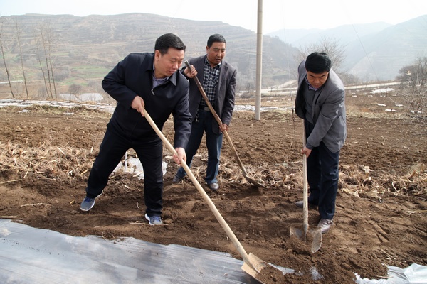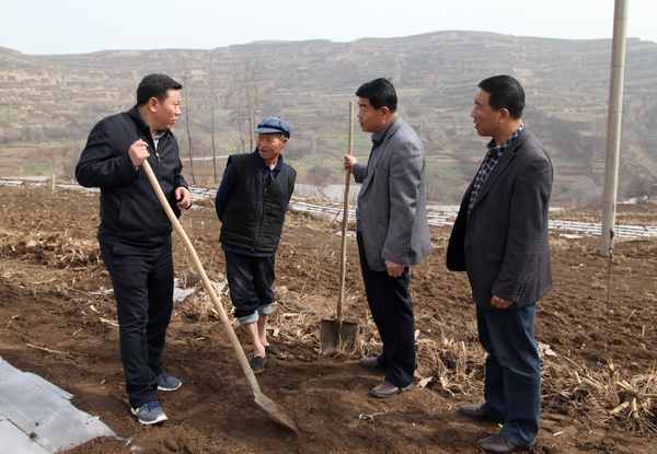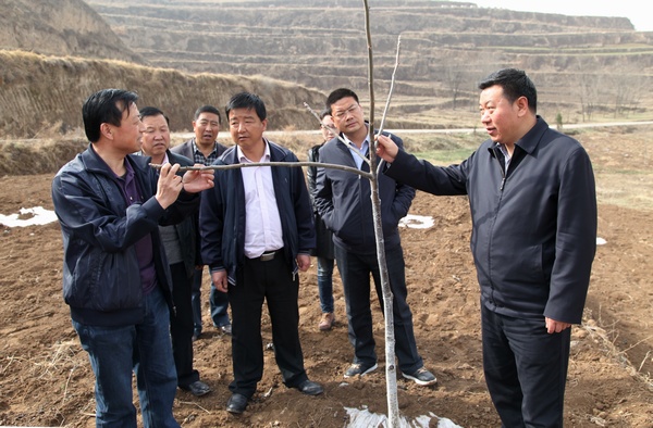 在督查黃門鄉(xiāng)下城村頂凌覆膜、峽口村果園管理、新城鄉(xiāng)新城梁頂凌覆膜、方灣梁春季建園建園點時,馬越垠要求,要繼續(xù)加強組織領(lǐng)導(dǎo),充分發(fā)動群眾,搶時令、搶墑情,加快對春季建園和頂凌覆膜工作進度;要加強技術(shù)跟蹤指導(dǎo),抽調(diào)專業(yè)技術(shù)人員,開展“零距離”技術(shù)服務(wù),指導(dǎo)各鄉(xiāng)鎮(zhèn)開展春季建園和頂凌覆膜工作,確保建園和覆膜質(zhì)量標準高技術(shù)規(guī)范;要密切注意氣象變化,加強關(guān)鍵時期低溫霜凍預(yù)防工作,在保質(zhì)保量完成建園工作的基礎(chǔ)上,各鄉(xiāng)鎮(zhèn)要在果業(yè)局門的指導(dǎo)下,及時開挖防霜窯,有效預(yù)防低溫霜凍危害;要多方籌資,加大對歷年建園的補植補造、病害蟲的防治、擴盤覆膜的綜合管理,及時幫助鄉(xiāng)鎮(zhèn)和農(nóng)戶解決果園管理中存在的突出問題,進一步鞏固建園成果,促進全縣果園管理工作上水平。